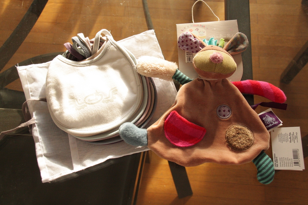 Cadeaux des filles pour leur petit frère. Et oui, c'est un petit gars !!!