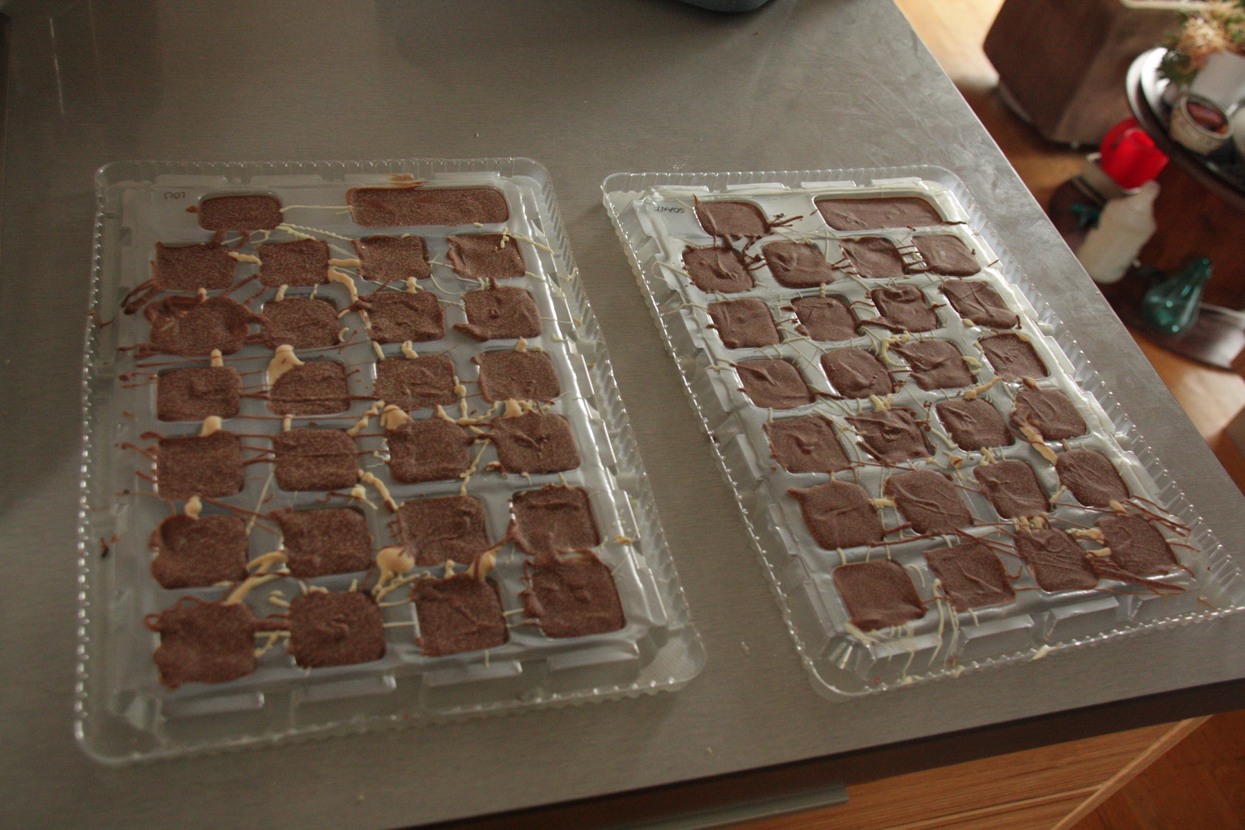 Les calendriers de l'avent sont prêts ! (chocolat blanc, chocolat au lait, noix et décos de toutes les couleurs)