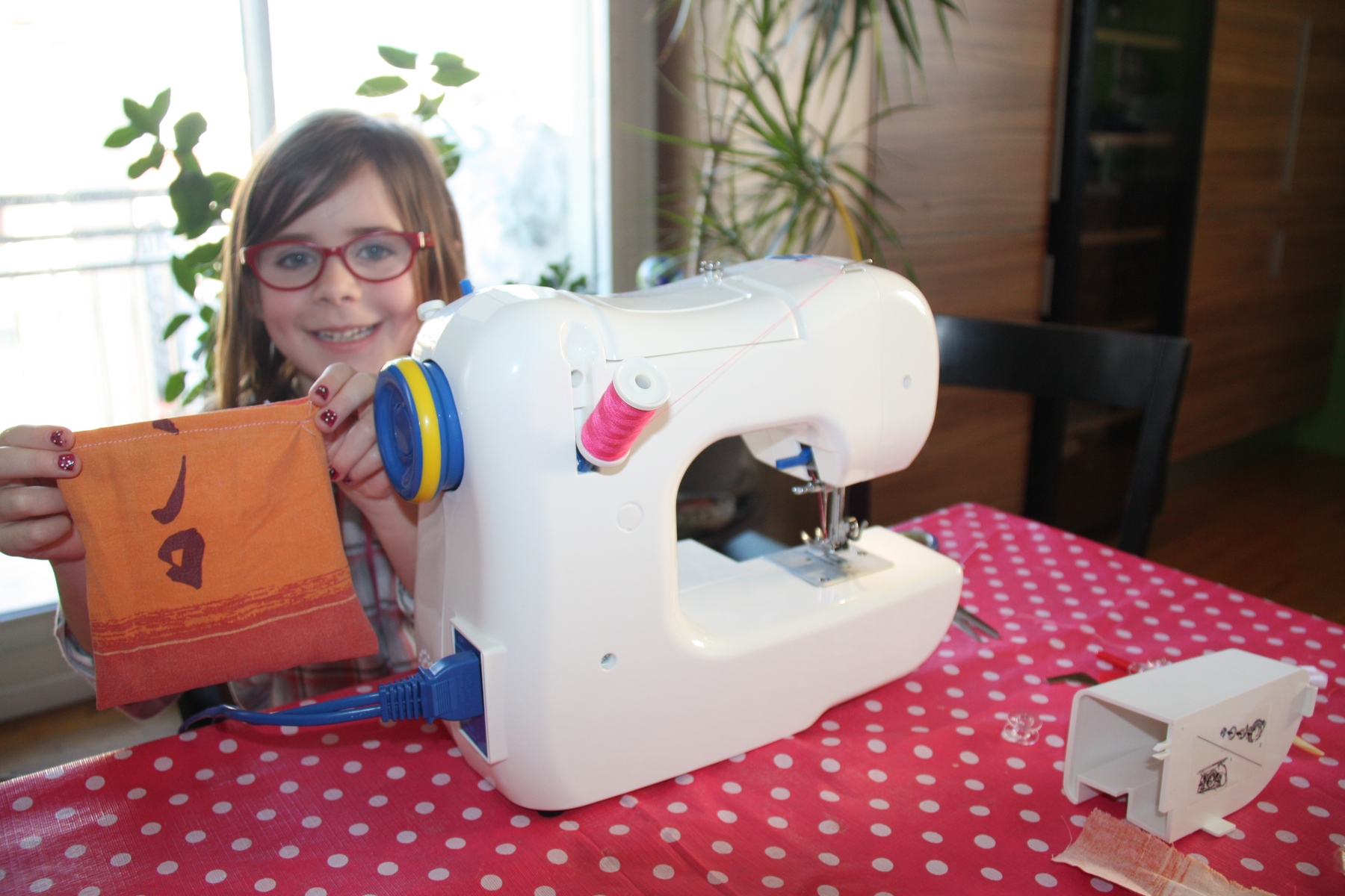 Lou fait déjà des miracles avec la machine à coudre reçue pour ses 6 ans !